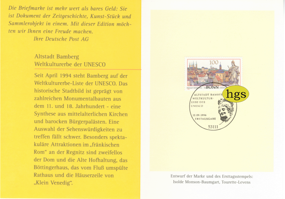 Sonderausgabe Ersttagsbrief Altstadt Bamberg 100 PF mit Ersttagsstempel :